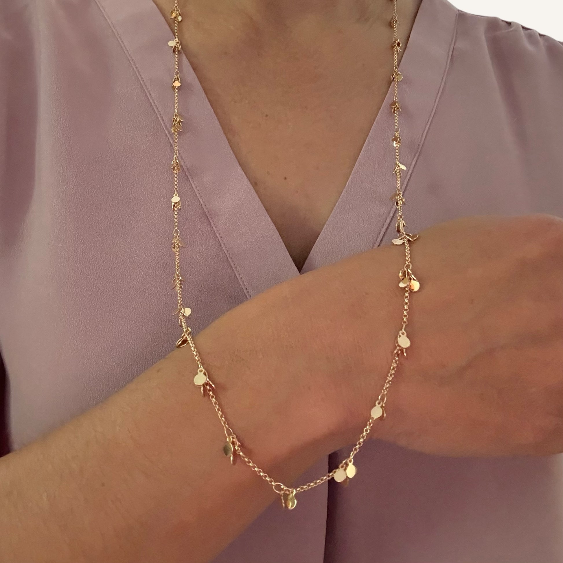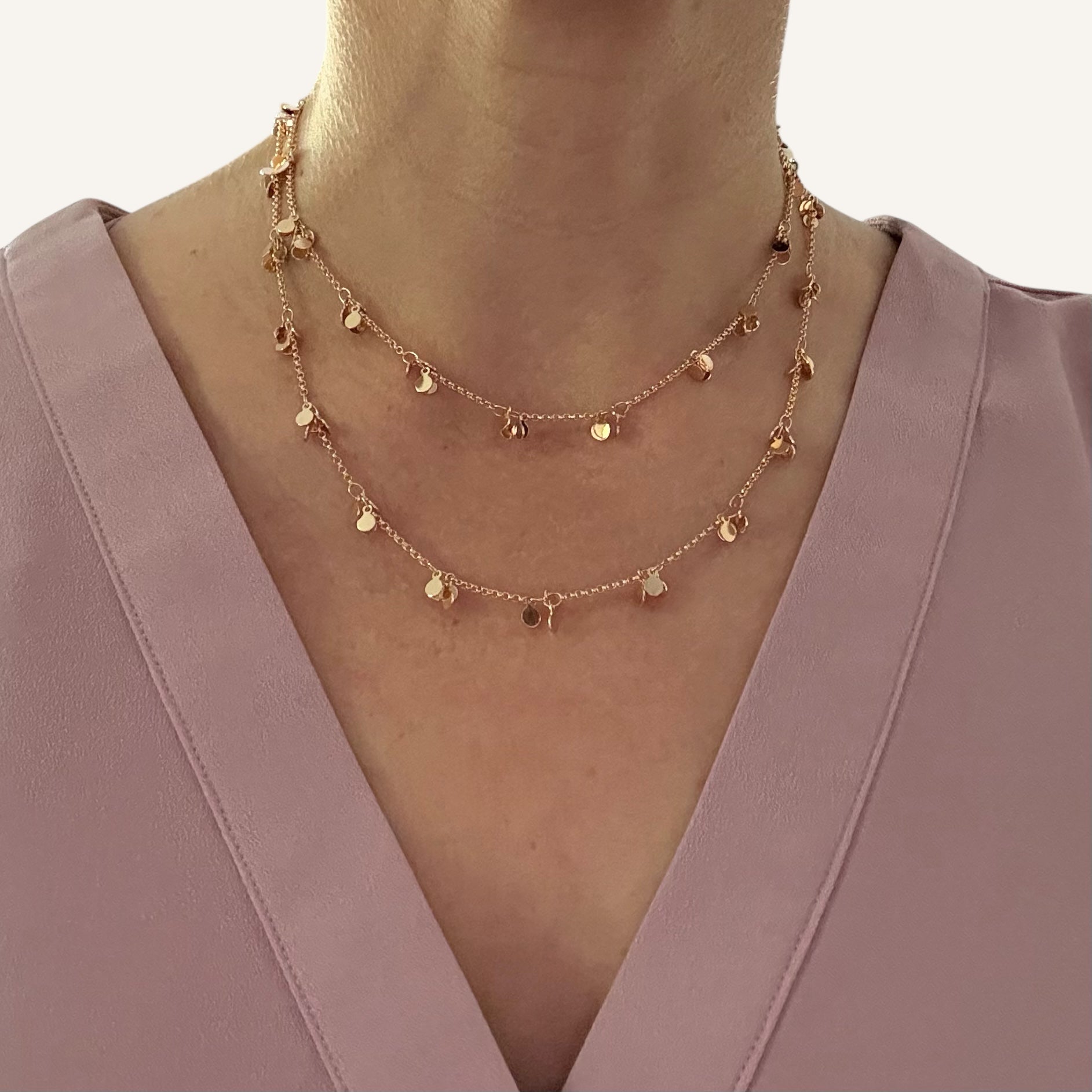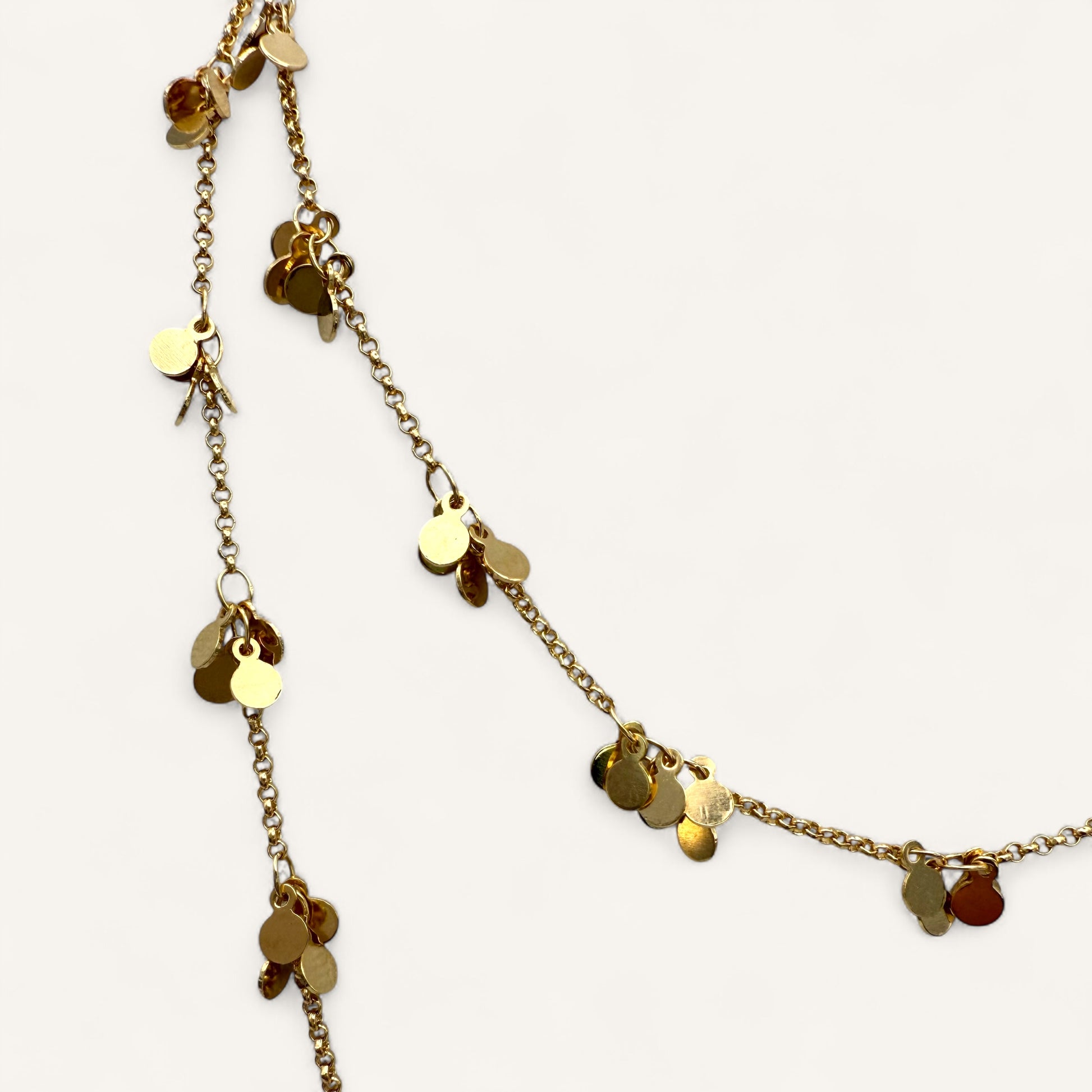 A graceful layered necklace with delicate golden drops that move with effortless elegance.