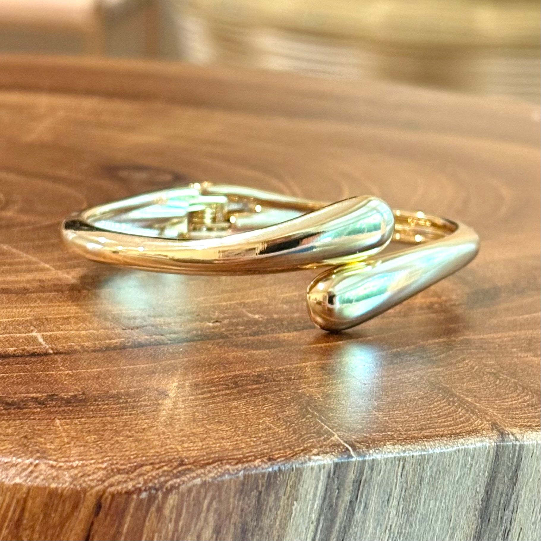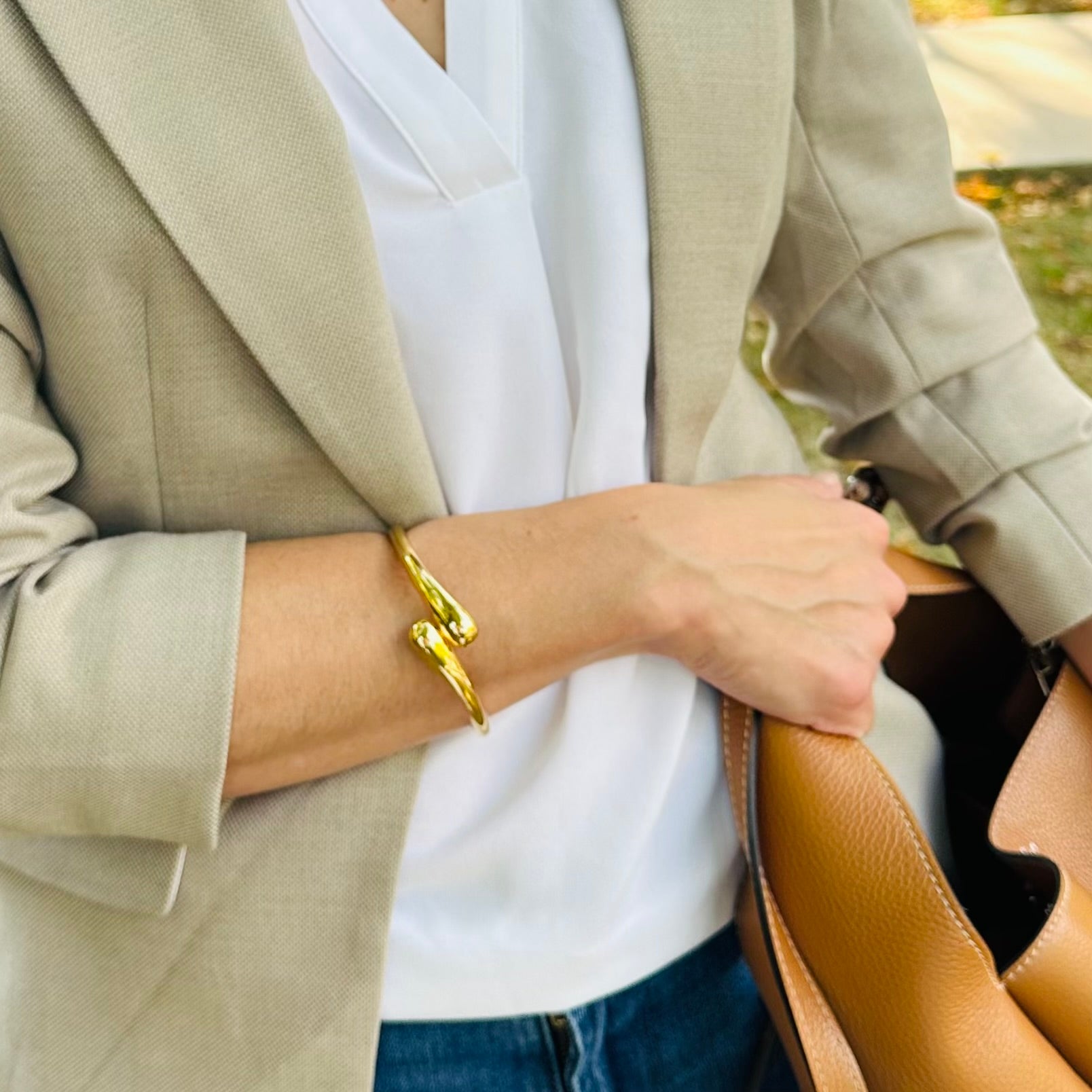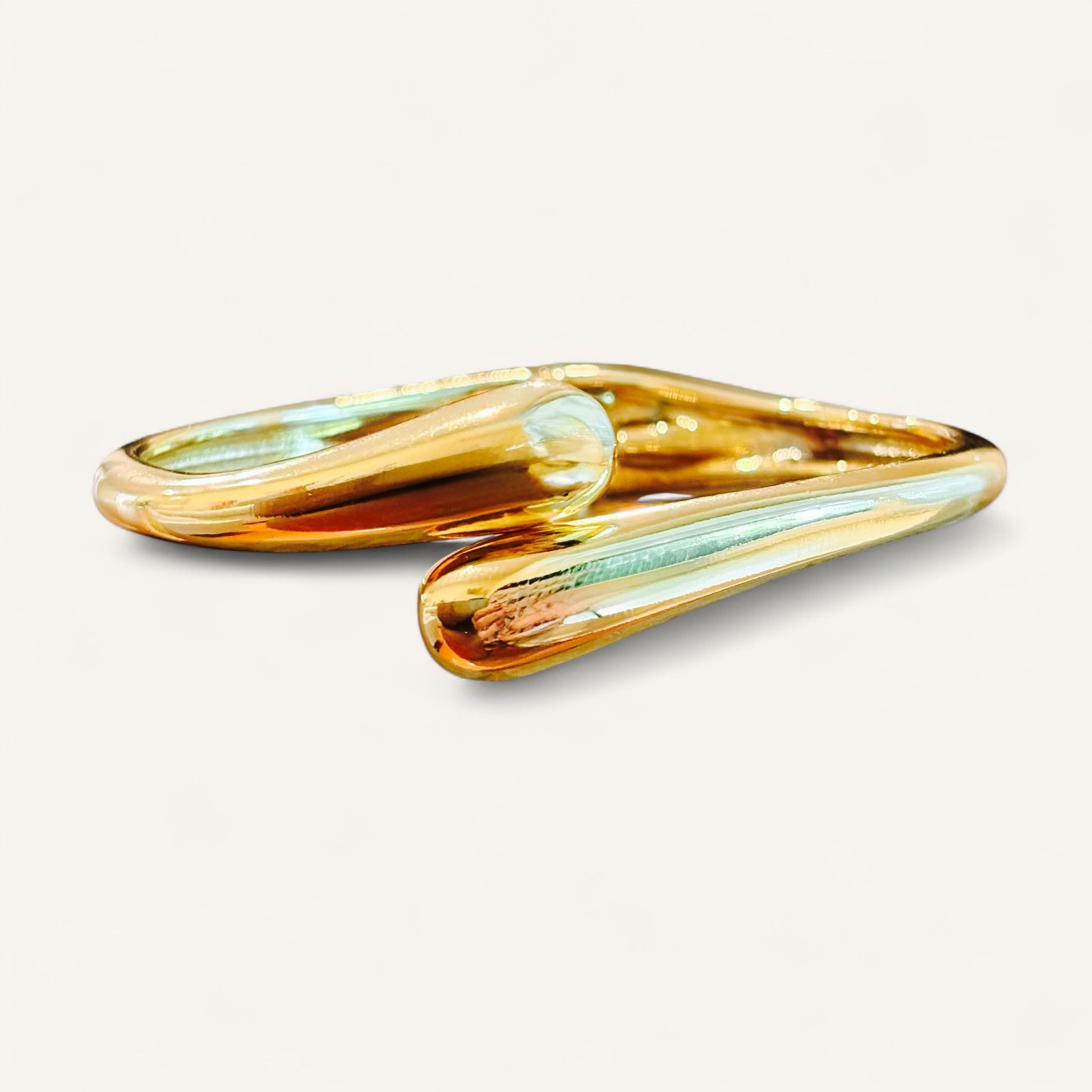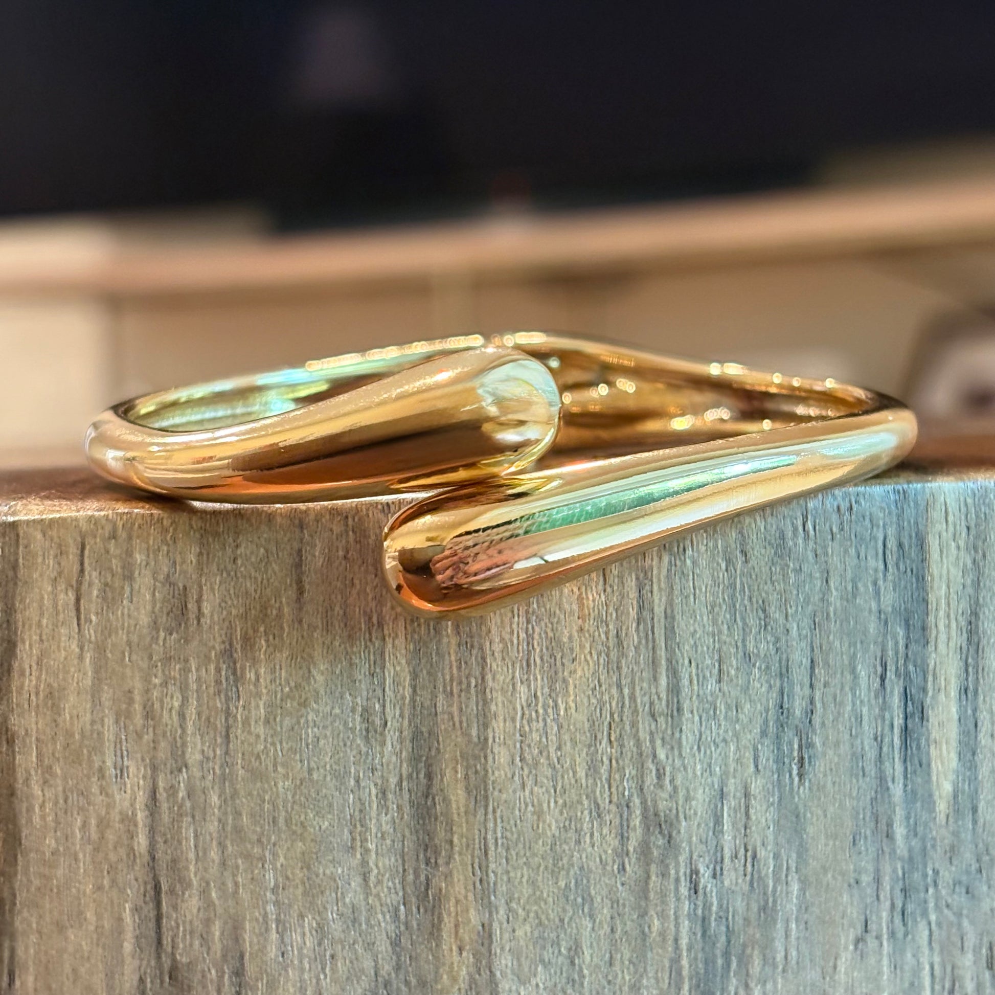 Polished gold bracelet with fluid lines that capture the glow of first light.