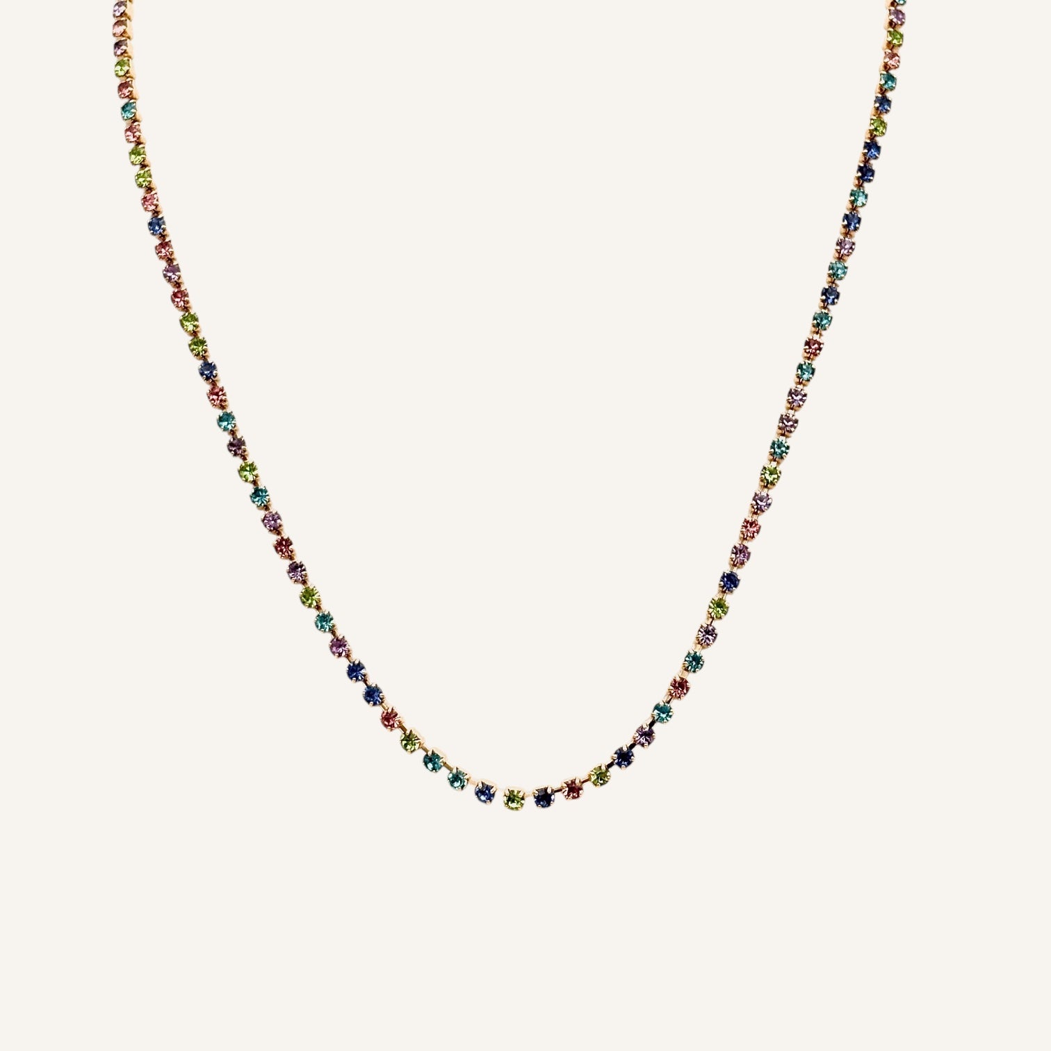 A delicate gold-tone chain set with a mesmerizing spectrum of tiny crystals. Subtle yet playful, perfect for everyday color.