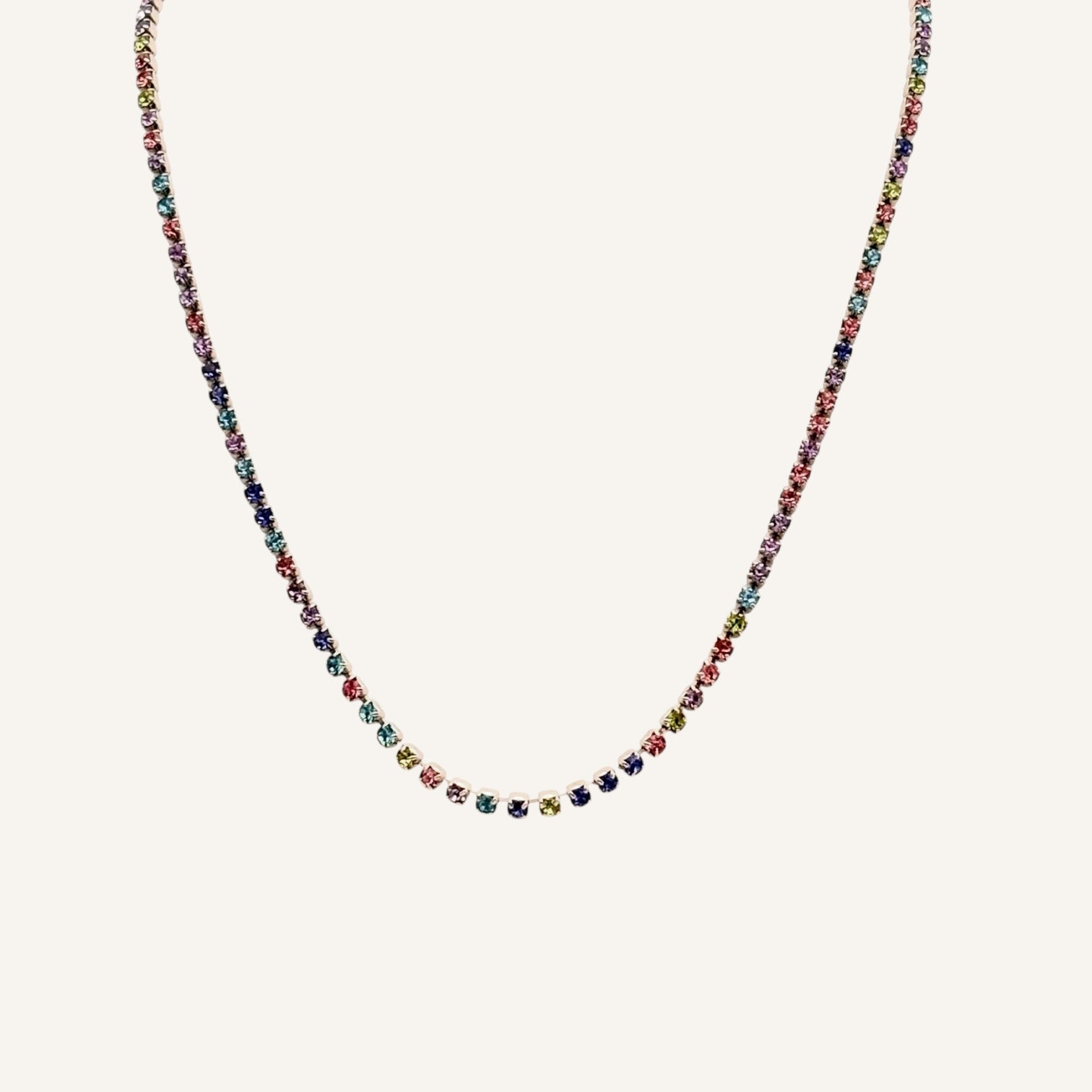 A delicate silver-tone chain set with a mesmerizing spectrum of tiny crystals. Subtle yet playful—perfect for everyday color.
