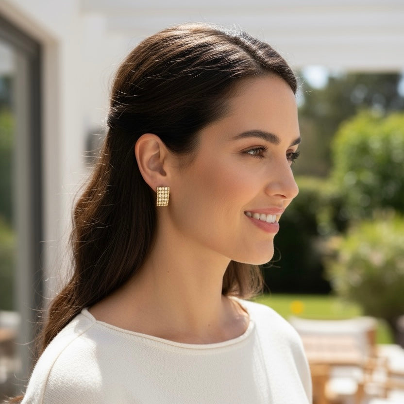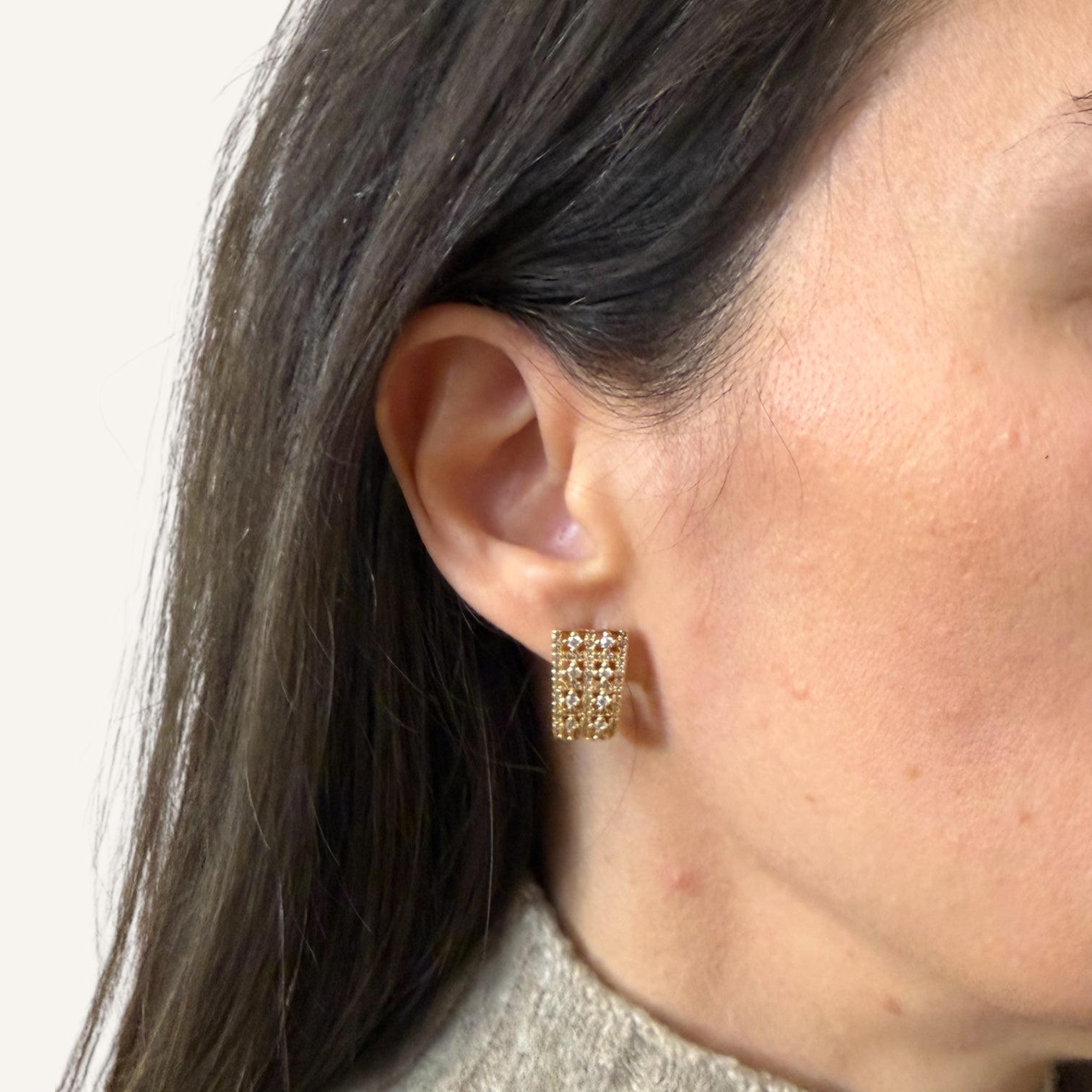 Elegant gold earrings with a graceful curve and refined sparkle.