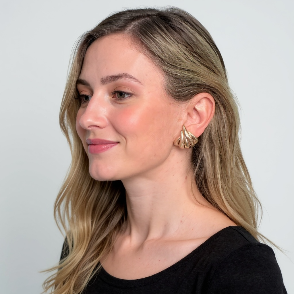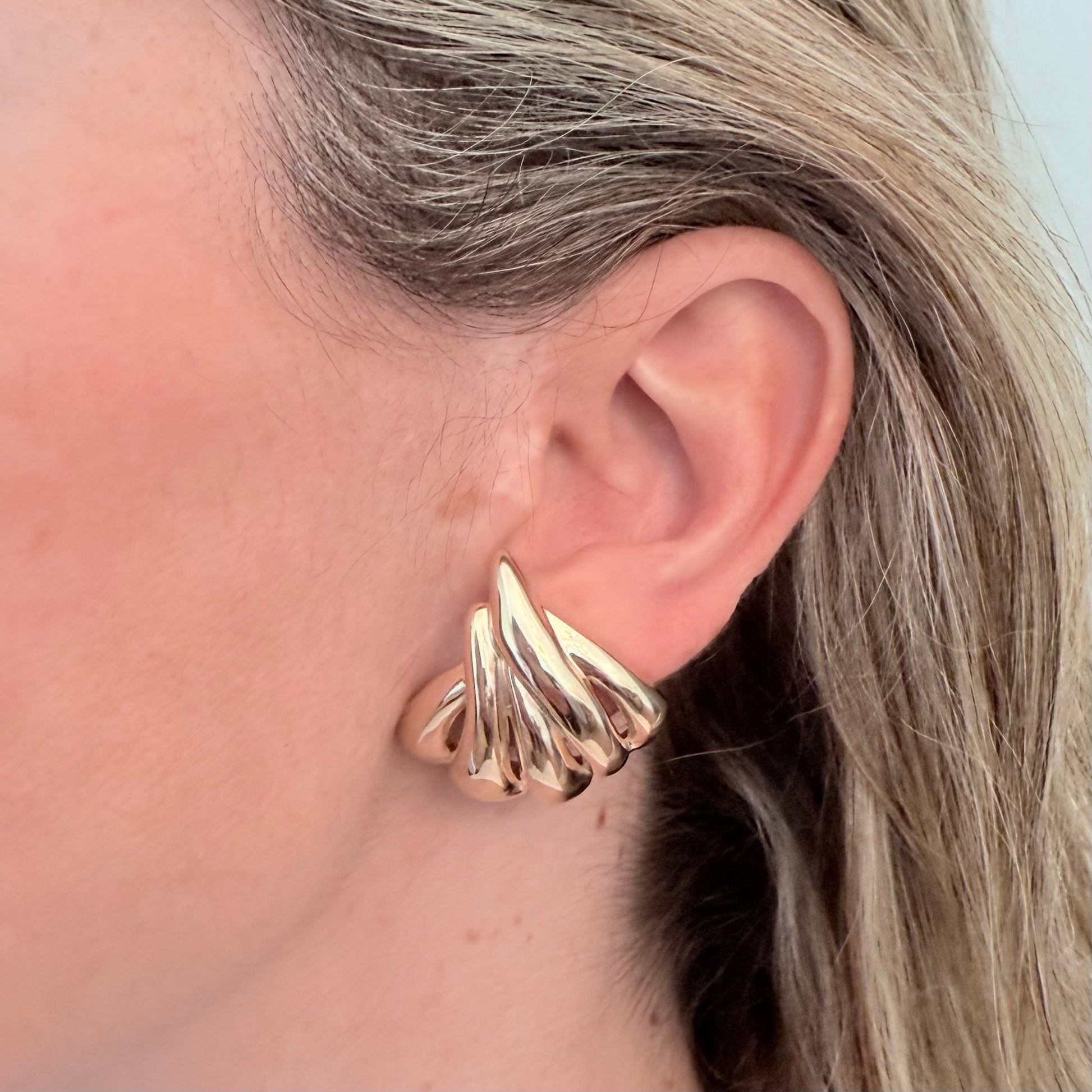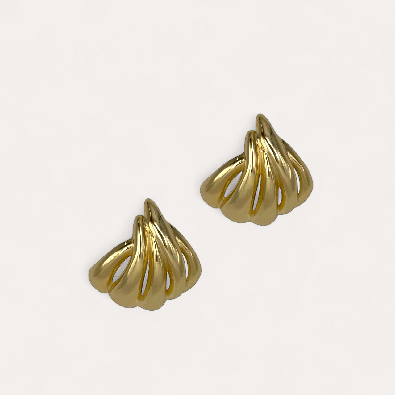 A sculptural gold-tone earring with flowing openwork lines, evoking a sense of movement and modern elegance. Bold yet refined.