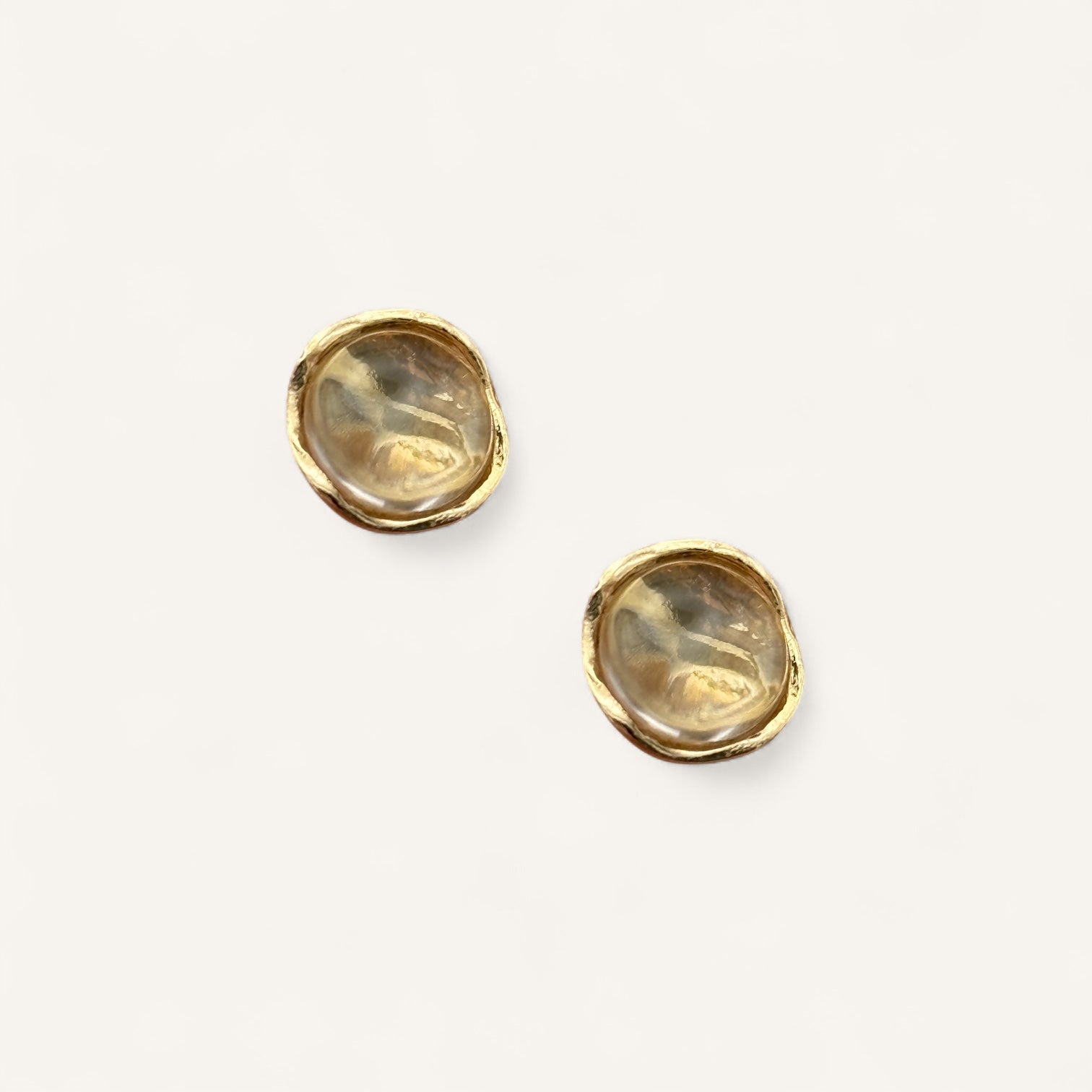 Organic golden earrings with a soft molten glow that feels like captured light.