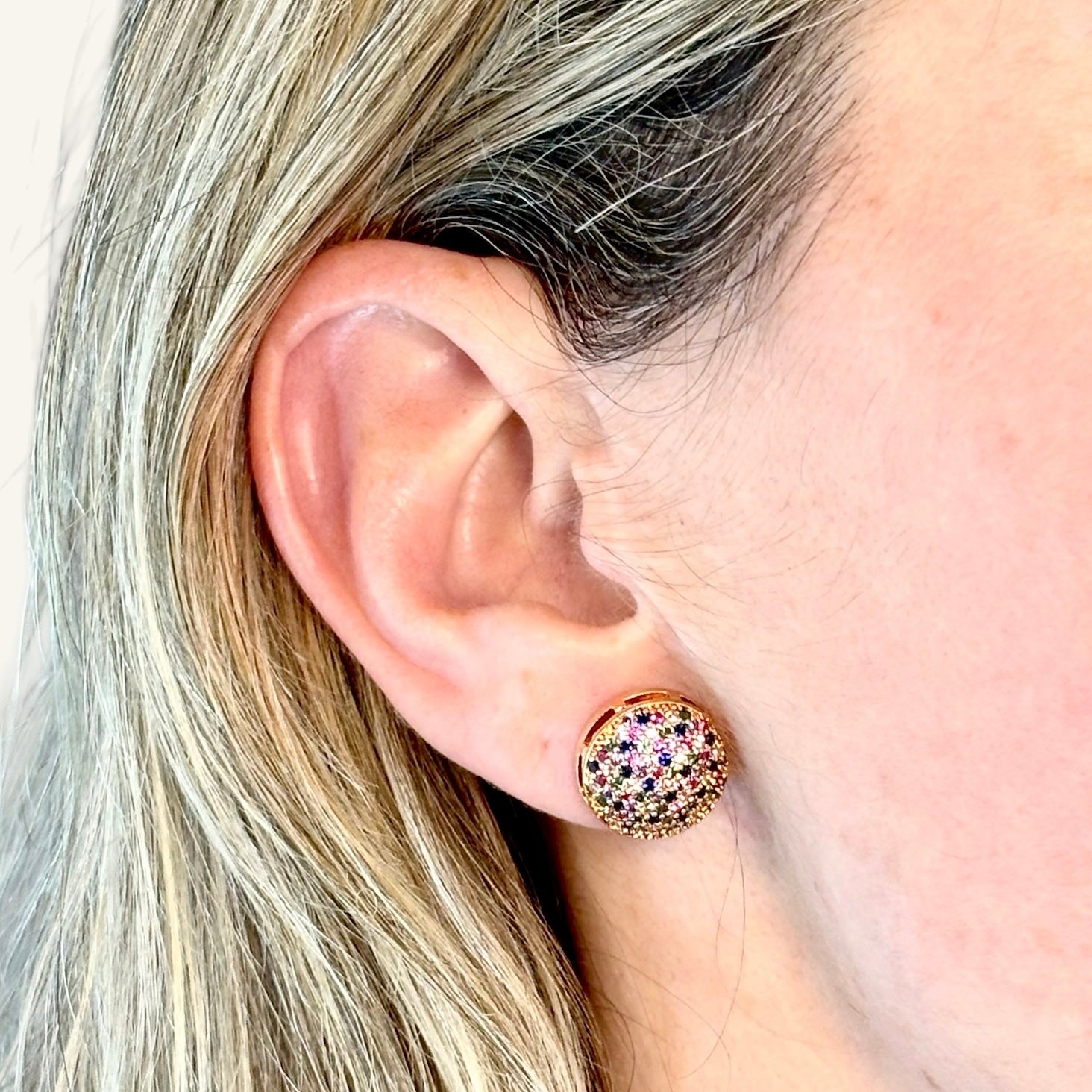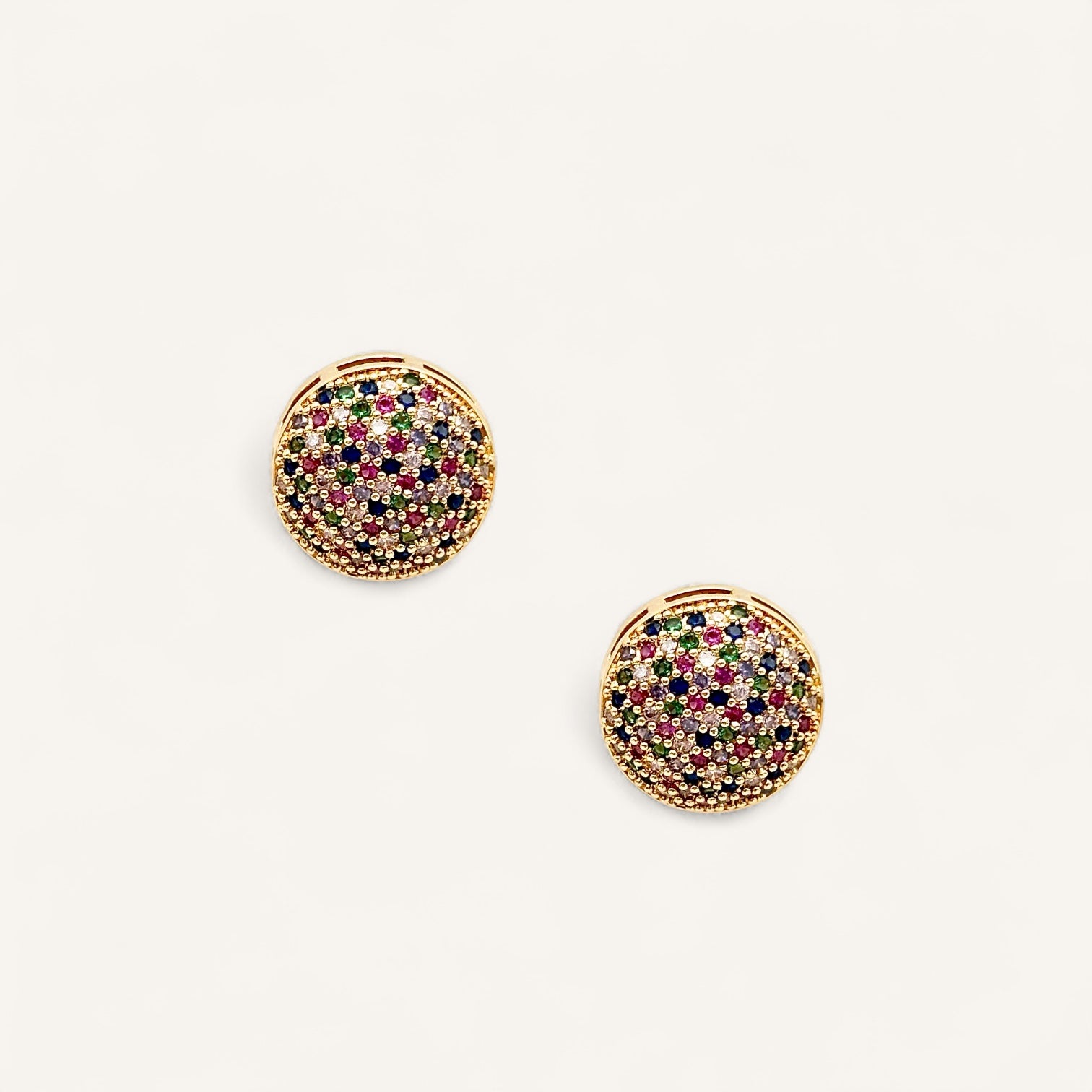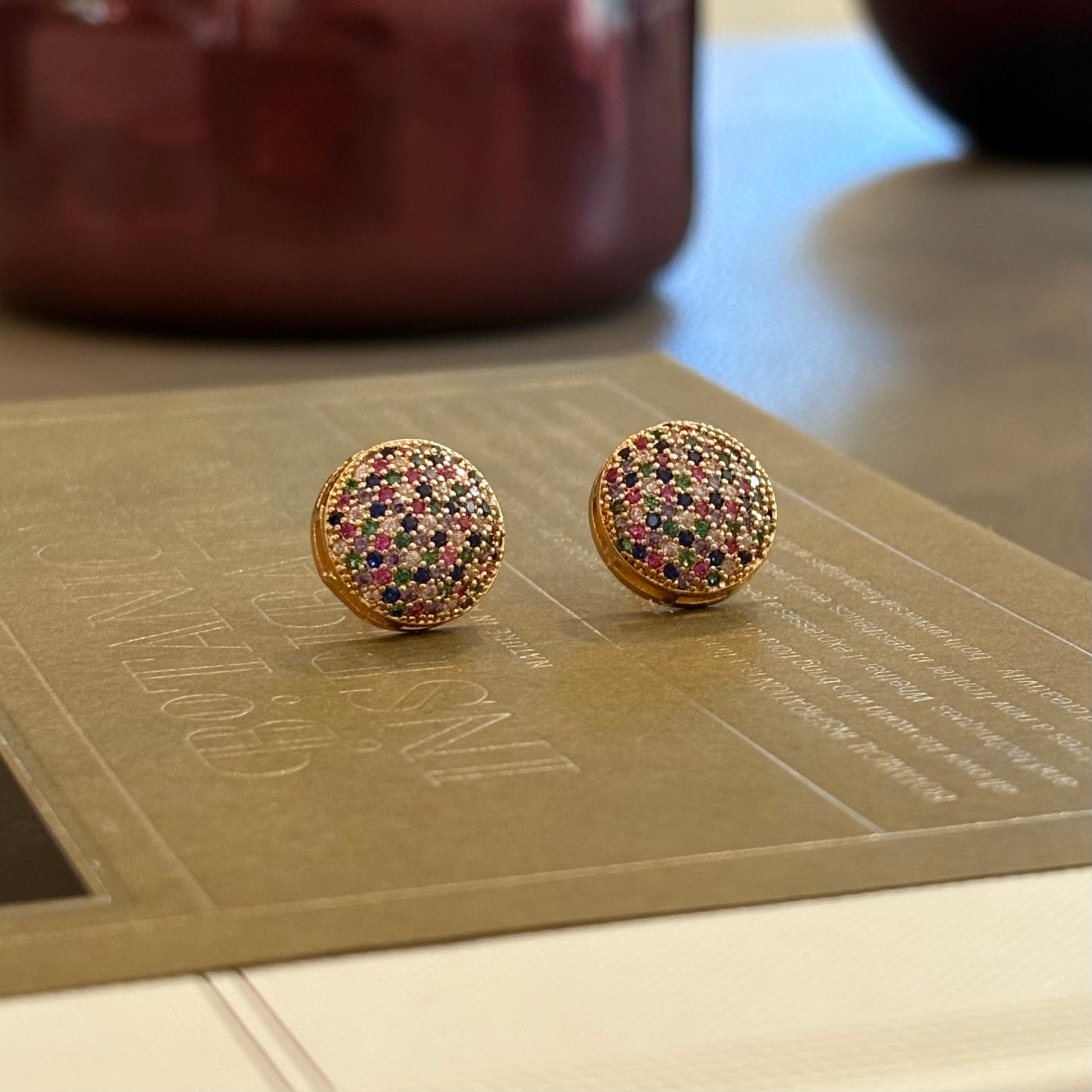 Radiant stud earrings adorned with colorful stones that glow with playful elegance.