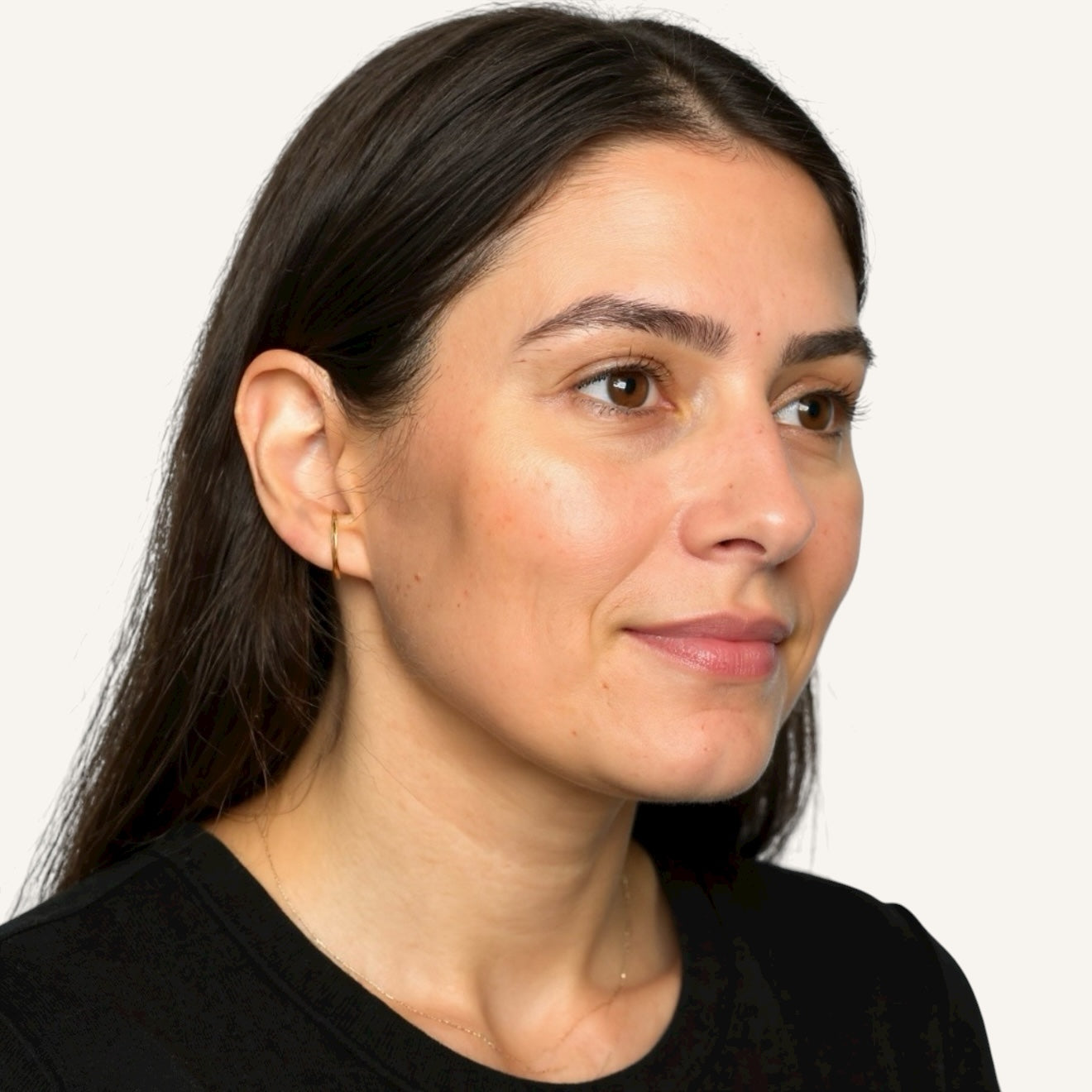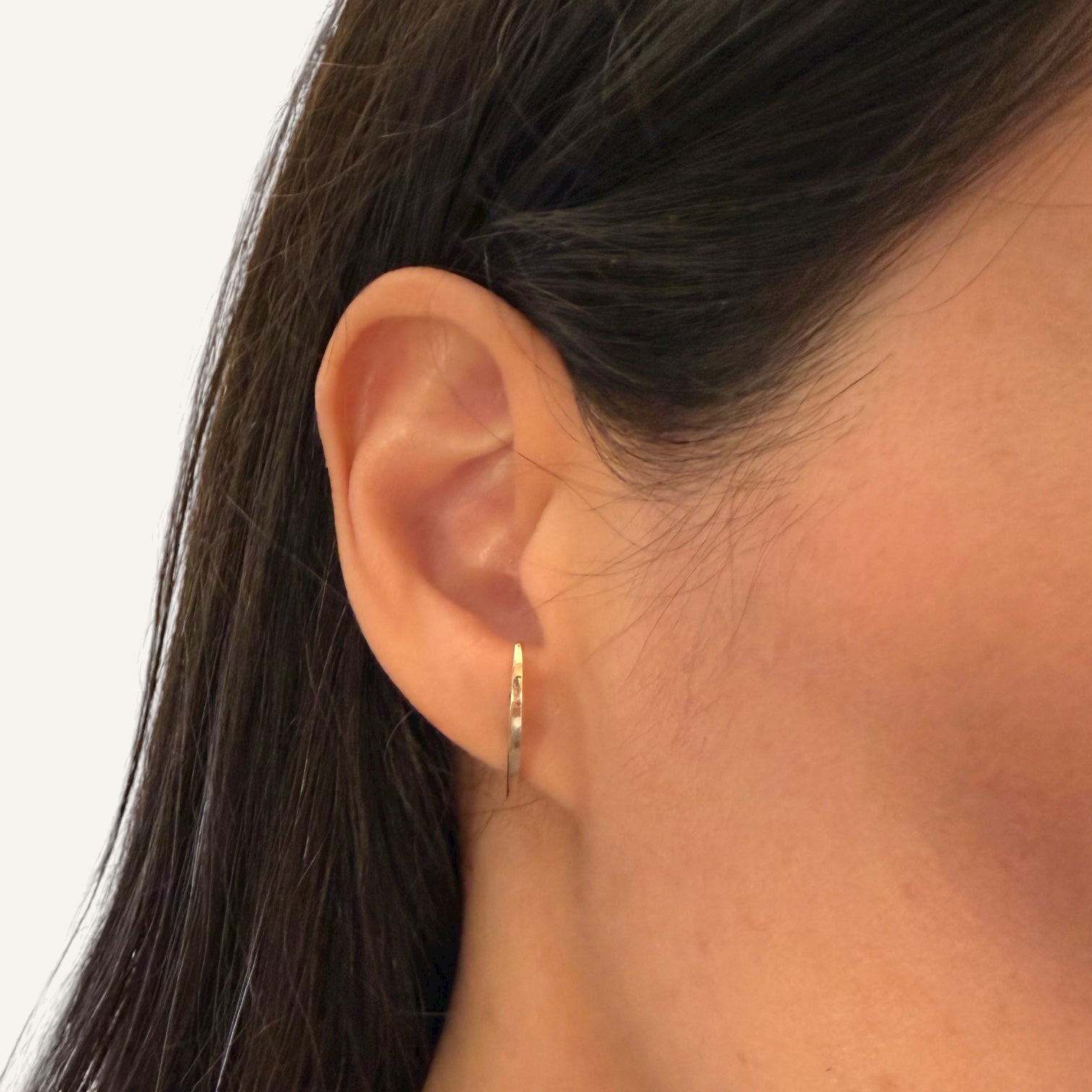 A whisper of gold with a modern edge. This sleek, minimalist earring curves gently along the ear, creating a subtle yet striking statement of elegance. Perfect for everyday wear or layered styling.
